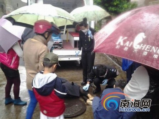 12月15日,一名湖南籍女子在海口滨海新村景湾路海景湾大厦西侧小巷的一个窨井内被路人发现救出。16日上午,在海南省人民医院龙华门诊部,南海网记者见到了郭女士,虽然此时她神智已经很清醒,但还有些惊魂不定。郭女士来自湖南湘潭。据郭女士说,这位借她钱的是老乡,也一样姓郭,认识了很长时间,“算是老朋友了”。今年9月和11月,对方跟她两次共借了十万元。事发前,郭某对她说“他在海南借到了50万元,让拿欠条过来海南把钱还了”。于是,12月9日,郭女士来不及多想,就从湖南飞到三亚,在三亚呆了两天后,12月11日他们又来到海口,住在灵山的一家旅馆。当晚郭某约她出去玩,但被她拒绝了。