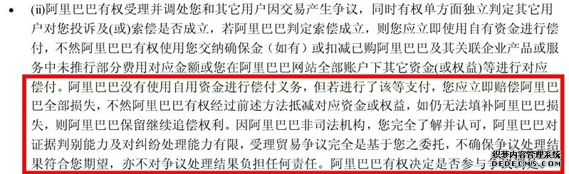 △《阿里巴巴服务条款》中注明,阿里巴巴没有使用自用资金进行偿付义务。